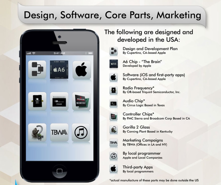 After all, being a “service economy” driven by creativity and innovation, the real strength of US companies is in their R&D, which is a long-term job creator. What is the real value Apple Inc. contributes? The company hardly makes anything itself. Instead, Apple is correctly identified as a world-beating R&D organization, a creator of high-tech designs, and an orchestrator of global supply chains in which components from a dozen or more nations flow to China to be assembled there, and the finished products are then exported from China to the rest of the world’s markets—all under the supervision and control of Apple.