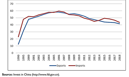 Figure 6: Percentage Share of China’s Exports (and Imports) Done by Foreign Enterprises