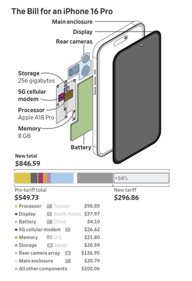 [4] Jie, Y. & Winkler, R. (2025). Apple to Source More Phones from India. Wall Street Journal. April 8, 2025. This article shows calculations from TechInsights, iFixit, and FactSet. Published online April 7, 2025, as Apple Plans to Source More iPhones From India as Potential Tariff Fix.